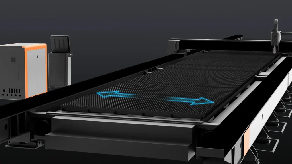 Segmented Ground-Track BedThe ground track gantry laser cutting machine adopts a segmented ground track bed design, which is convenient for assembly and disassembly.